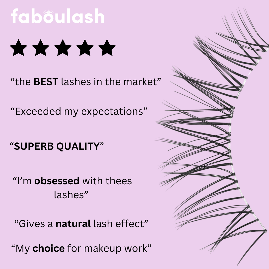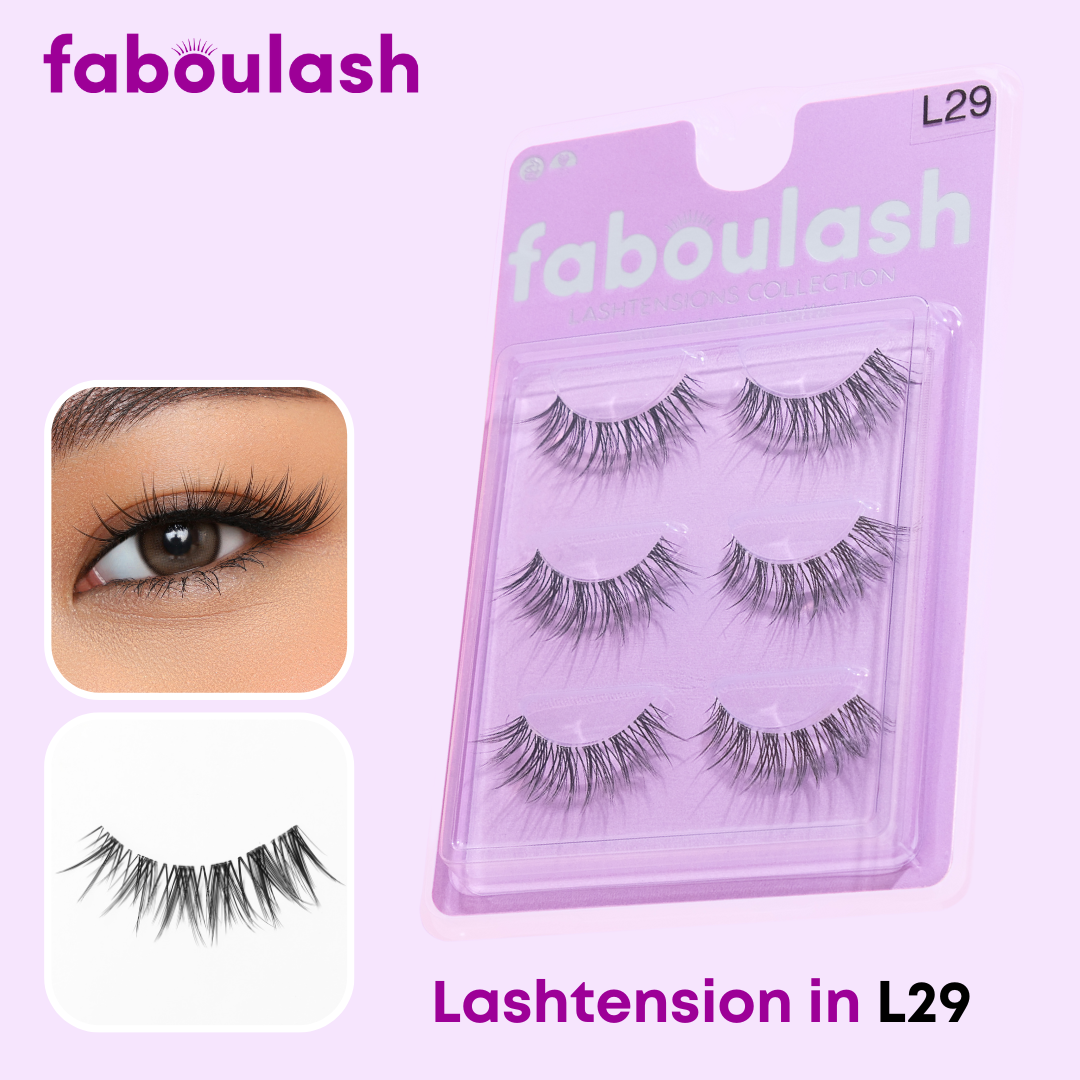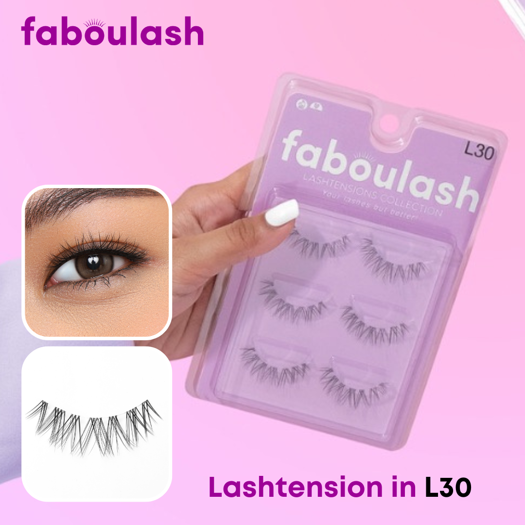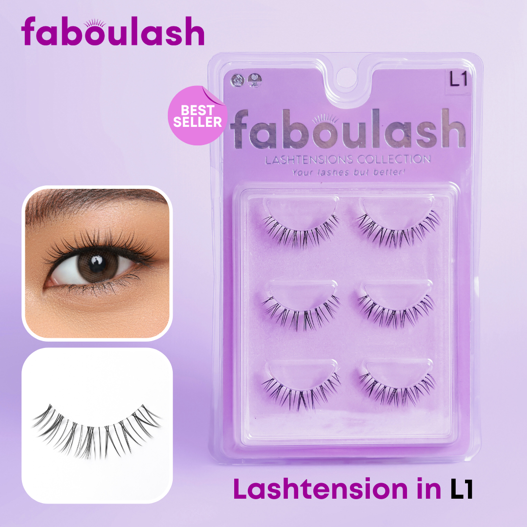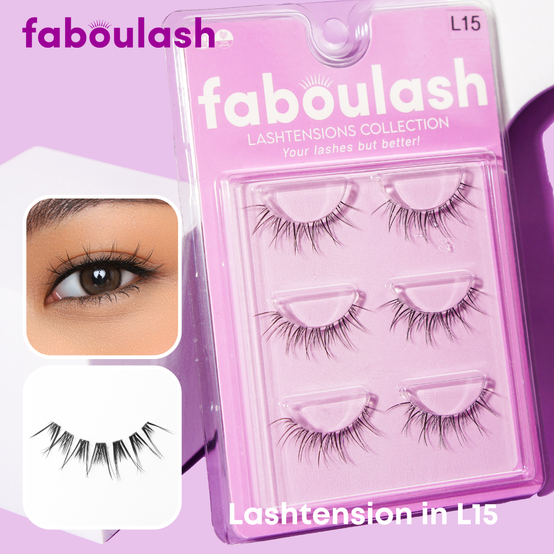 The award-winning and cult favorite, the Faboulash Lashtensions! This set of silk lashes mimic the cut and shape of eyelash extensions without the hassle of maintaining them. Imagine the fuller volume of lash extensions but with the convenience of being able to take them off the end of the day! Faboulash Transparent Band Technology also allows for the seamless integration with your natural lash line and creates the most natural look. Faboulash Lashtensions come in different variety of shapes and length so you can find what suits your eye shape or your mood best!
