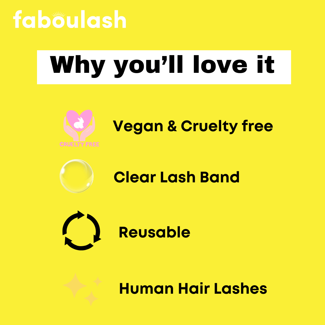 To reuse your Faboulash, gently remove it from your eyes after use. Peel off the adhesive and place it back into the lash tray to maintain its shape.