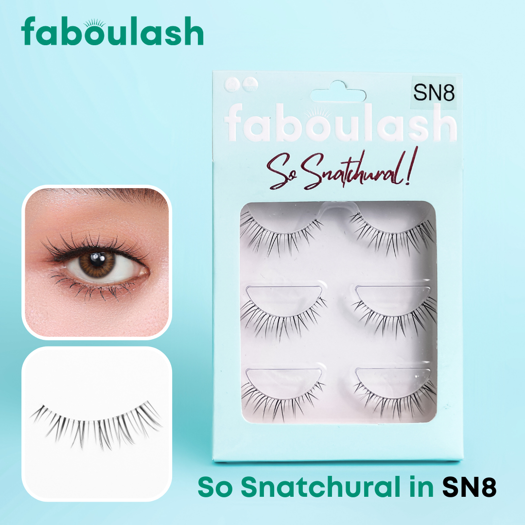 Keep the crowd guessing if you're wearing falsies! This is for the minimalist who want to give a subtle but beautiful difference to their everyday eye look. Faboulash Snatchural are your natural eyelashes but, you guess it "SNATCHED". Faboulash Snatchural are a tad longer and a tad more volume than natural eyelashes. This set is perfect for beginners who are just dipping their toes to the world of false eyelashes. Faboulash Snatchural are incredibly lightweight and the most natural looking in our collection. Faboulash Transparent Band Technology also allows for the seamless integration with your natural lash line and creates the most natural look!