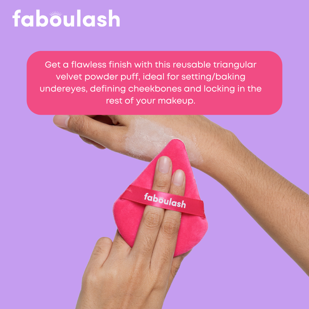 Get a flawless finish with this reusable triangular velvet powder puff, ideal for defining cheekbones and setting makeup. A must-have for makeup lovers and lash wearers alike.